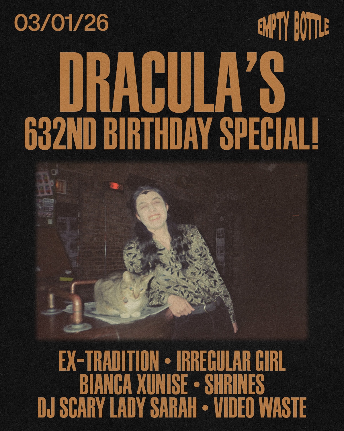 Dracula’s 632nd Birthday Special! with Ex-tradition, Irregular Girl, Bianca Xunise, Shrines, DJ Scary Lady Sarah, (Video Waste)