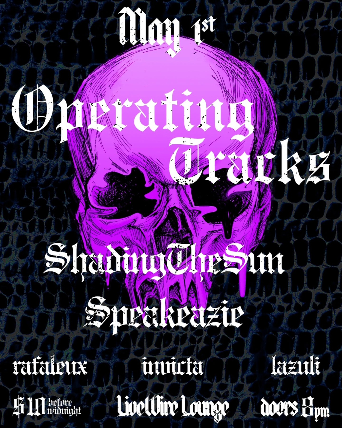 Operating Tracks returns to Livewire Lounge May 1st! We welcome Shading The Sun to Chicago along with Speakeazie and your Operating Tracks Djs: Rafaleux, Invicta, and Lazuli. Doors at 8pm. $10 for the bands before midnight. Cash Only. ATM inside. Plenty of NA options available! See you there!